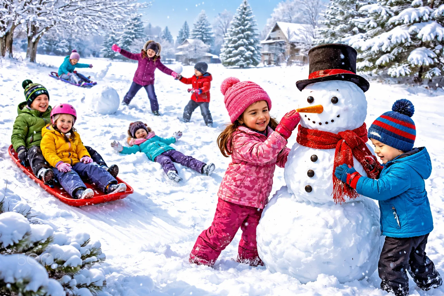 - Sledding safety: Never sled near roads, frozen ponds, or areas with trees or obstacles. Feet-first only for younger children.