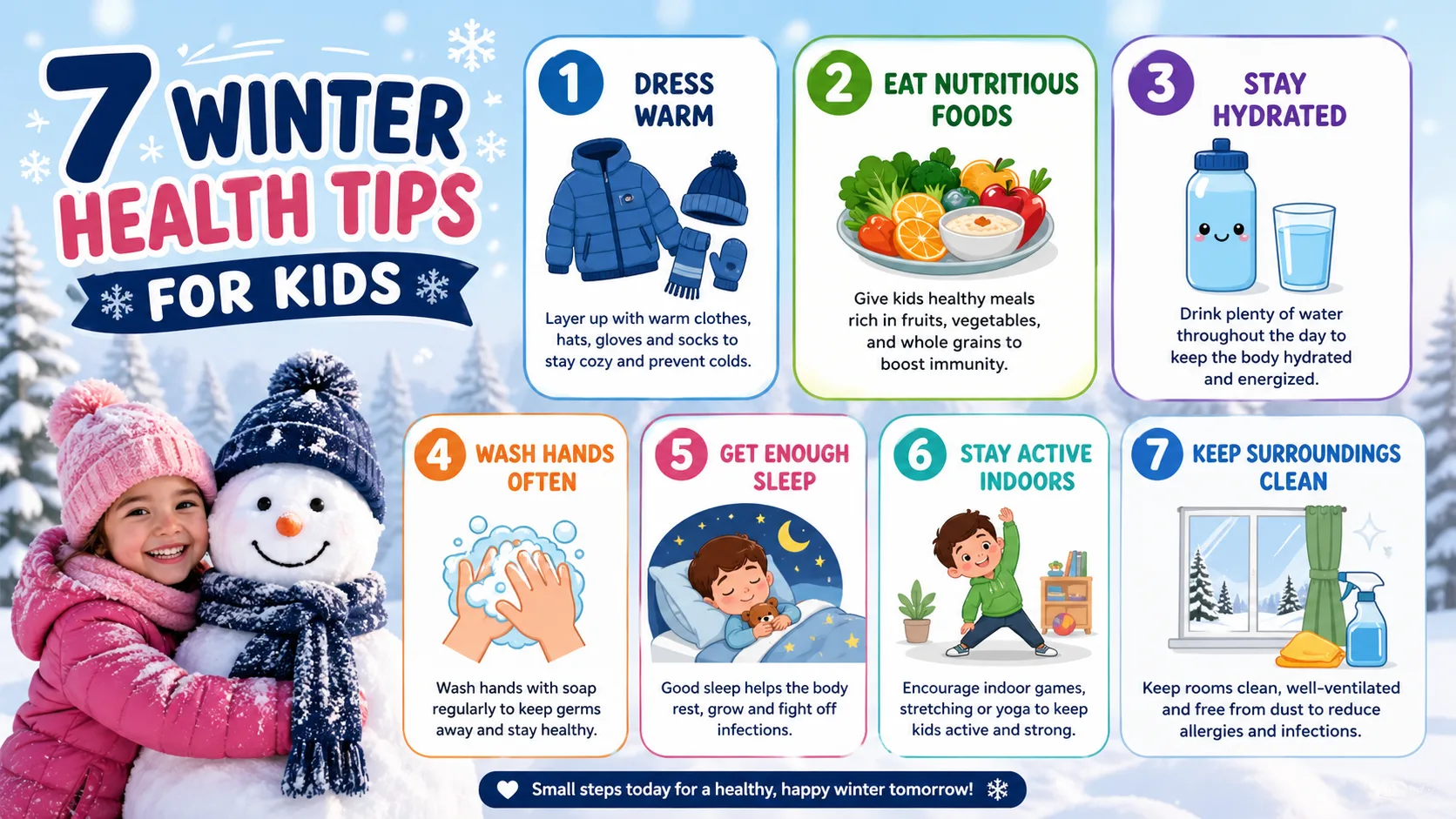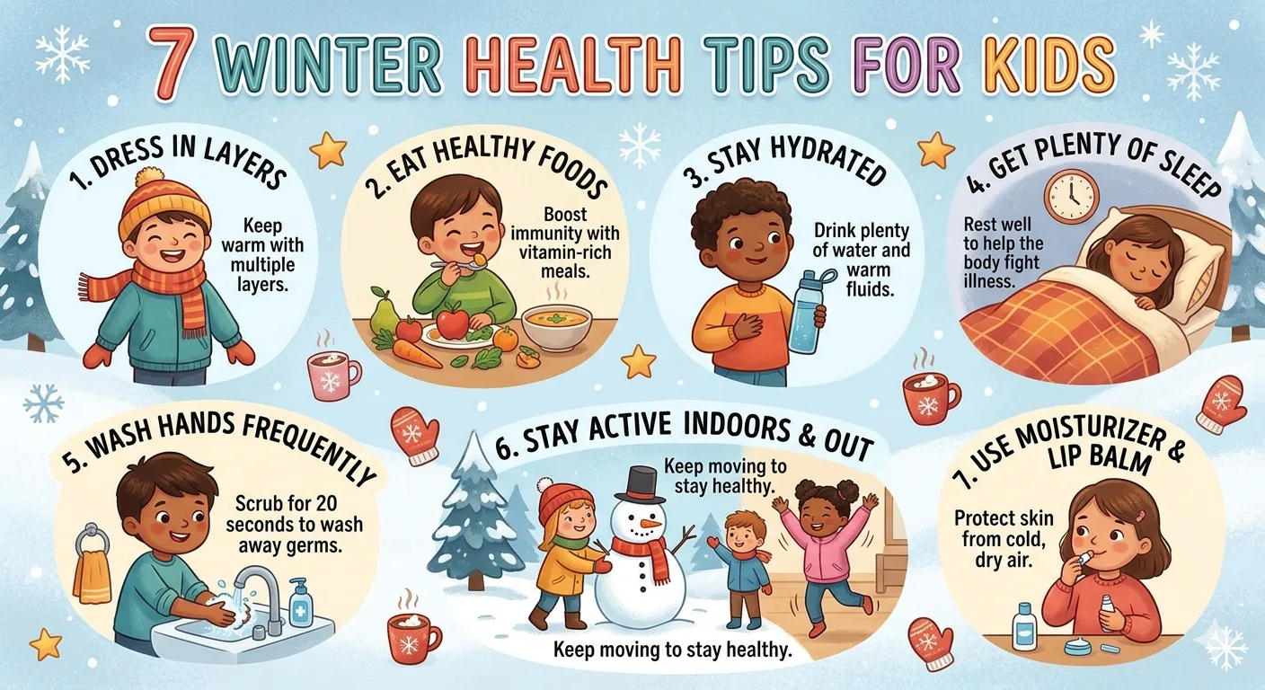 From properly layering clothing to knowing the early warning signs of hypothermia, the decisions you make before your child steps outside can protect them in powerful ways. This complete 2026 guide covers the 7 most important winter health tips for kids, backed by guidance from the American Academy of Pediatrics (AAP), the CDC, and leading pediatric specialists across the country.