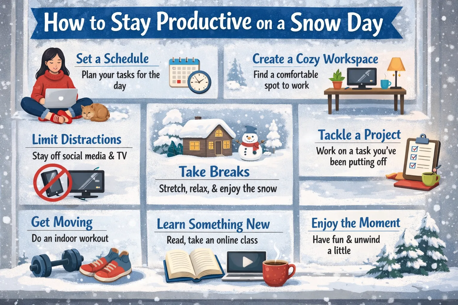 Learning how to stay productive on a snow day is not about grinding through every possible hour or feeling guilty for taking a break. It is about using a rare, unscheduled gift of time in a way you will genuinely be glad for tomorrow morning.